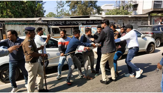 छात्रसंघ चुनाव के दौरान हुए विवाद मामले को लेकर कांग्रेस कार्यकर्ताओं ने बुधवार को कोतवाली पहुंचकर विरोध प्रदर्शन किया। आक्रोशित कांग्रेस कार्यकर्ताओं ने कहा की पुलिस आरोपियों पर कार्रवाई करने से बच रही है।पुतला फूंकने का प्रयास कर रहे हैं कांग्रेस कार्यकर्ताओं से पुलिस ने पुतला छीन लिया। इसके बाद कार्यकर्ता कोतवाली के सामने सड़क पर धरने पर बैठ गए। इस दौरान पुलिस काफी देर तक कार्यकर्ताओं को समझाया, जिसके बाद कोतवाली से कोतवाली से कुछ दूर जाकर पुतला फूंका।