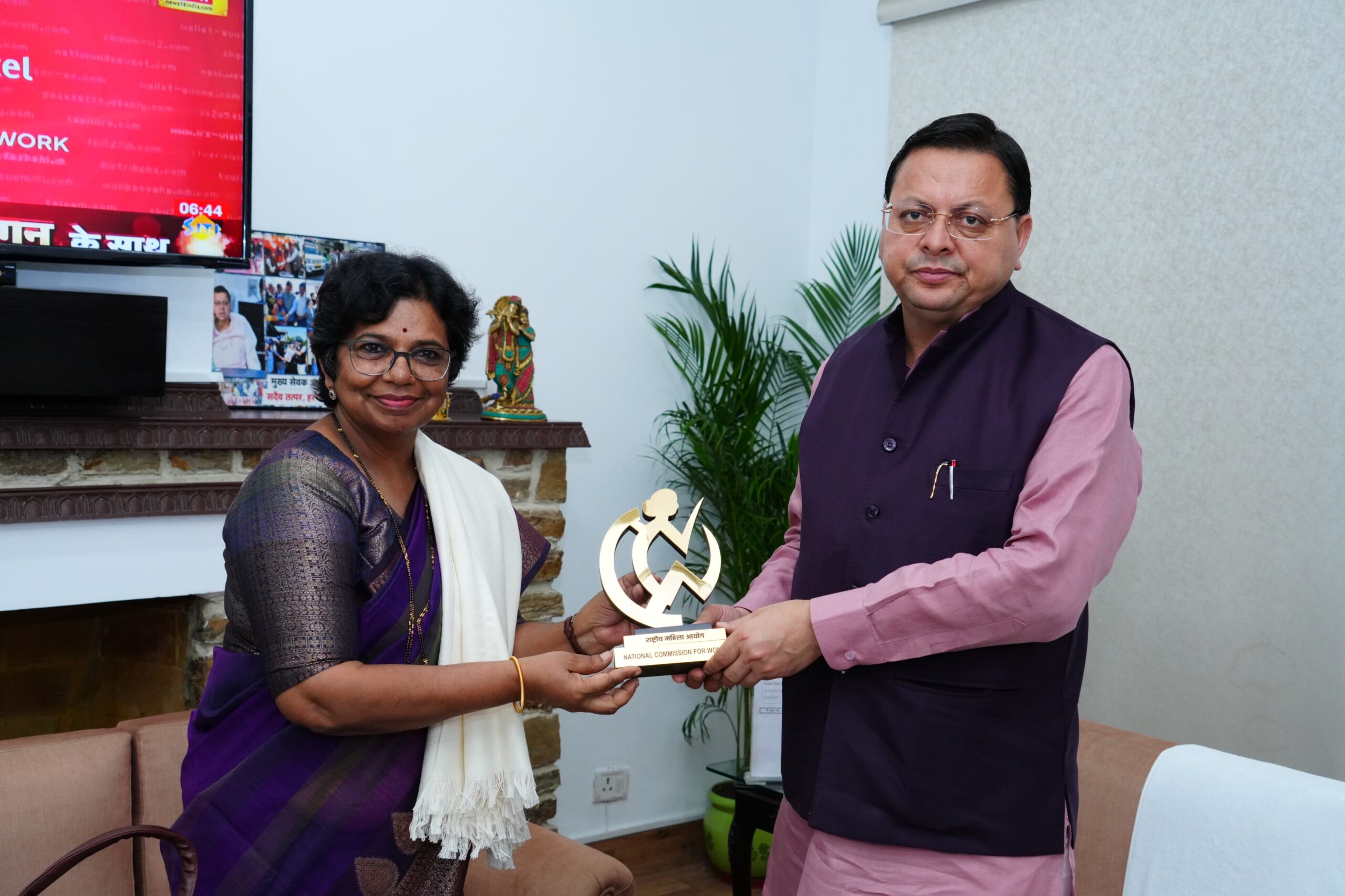 देहरादून ब्यूरो – मुख्यमंत्री श्री पुष्कर सिंह धामी से आज मुख्यमंत्री आवास में राष्ट्रीय महिला आयोग (छब्ॅ) की अध्यक्ष श्रीमती विजया किशोर रहाटकर ने शिष्टाचार भेंट की। मुख्यमंत्री श्री धामी ने श्रीमती विजया किशोर रहाटकर का आत्मीय स्वागत करते हुए उन्हें शॉल एवं प्रतीक चिन्ह भेंटकर सम्मानित किया। मुलाकात के दौरान महिला सशक्तिकरण, बालिकाओं की सुरक्षा एवं कल्याण से जुड़े मुद्दों पर चर्चा हुई। इस अवसर पर उत्तराखंड राज्य महिला आयोग की अध्यक्ष श्रीमती कुसुम कंडवाल भी उपस्थित थी।